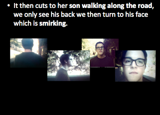 One of the main points which we realised that we had to change was the fact we would be relying on the acting too much and need to concentrate more on the camera movement. Another would be the fact that the film could possibly end up turning into a drama, seeing how the mother copes with her son being mentally ill, therefore we would need to focus more on the son and only briefly see her and maybe don't use the point of view shot. We thought that to draw the attention towards the son more we would have a voice over leading up to the killing creating a different story line.
